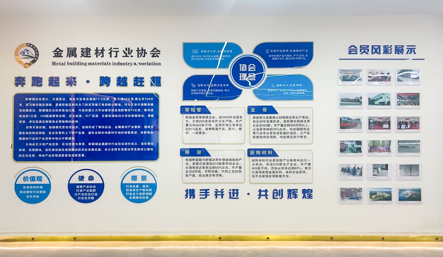2021年,河北省文安縣新鎮(zhèn)鎮(zhèn)的金屬建材行業(yè)全國行業(yè)協(xié)會成立,標志著新鎮(zhèn)金屬建材行業(yè)正式邁入了團結(jié)合作、共謀發(fā)展的新紀元。而新岳建材,作為行業(yè)內(nèi)的佼佼者,榮幸地受邀擔任行業(yè)協(xié)會的會長單位的身份,這一舉動讓新岳建材也承擔起引領(lǐng)行業(yè)發(fā)展的歷史使命與責任擔當。